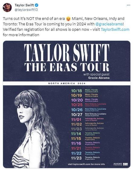 Source : www.facebook.comTaylor Swift’s Eras Tour Returning to North America in 2025